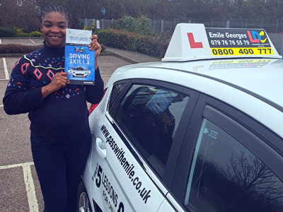 Yetunde Akwe Kingsley Passed 1st time with me :) Emile was the best man for the job. As an experienced driver, I had been driving for over 10 years before migrating to the UK. But unfortunately I failed my first driving test. I met Emile and, I am here today, as happy as I can ever be with my pass certificate just after 5 lessons! It us a miracle and Emile did his magic. He was calm and cool during all lessons. He identified all my weaknesses and channelled them into great strengths. I was sceptical from my first performance, I was scared, but Emile eased all my worries. I couldn't have asked for a better instructor. He is my God sent. Thank you so much Emile for all your efforts. I will never take it for granted.